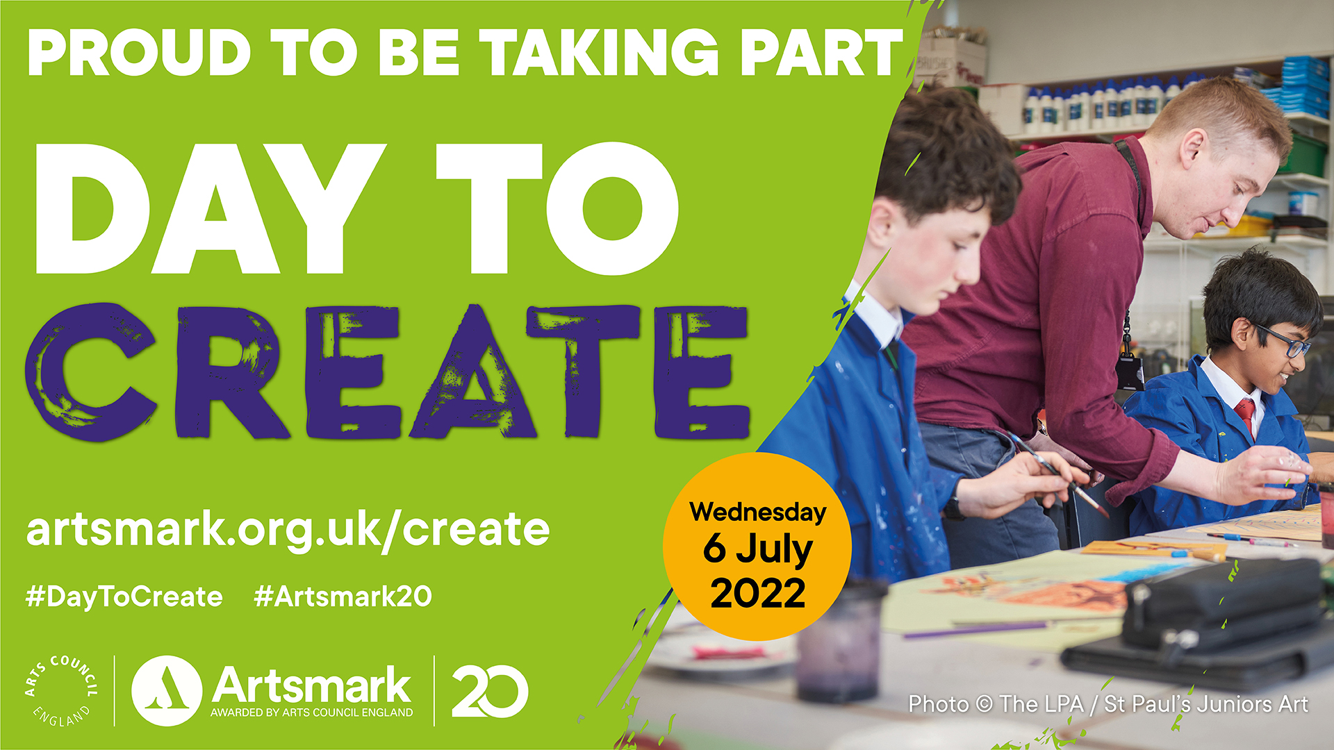 Thank you for joining in and shouting out about Day to Create on Wednesday 6 July. Below you can find static and animated assets to support your communications about #DaytoCreate and help spread the word!